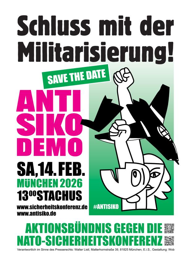 Bitte unterstützen Sie das Münchner Aktionsbündnis gegen die NATO-Sicherheitskonferenz auch finanziell mit einer Überweisung auf das Konto:
